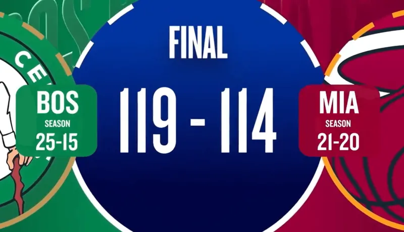 虎扑01月17日讯 昨日NBA常规赛,凯尔特人119-114力克热火。